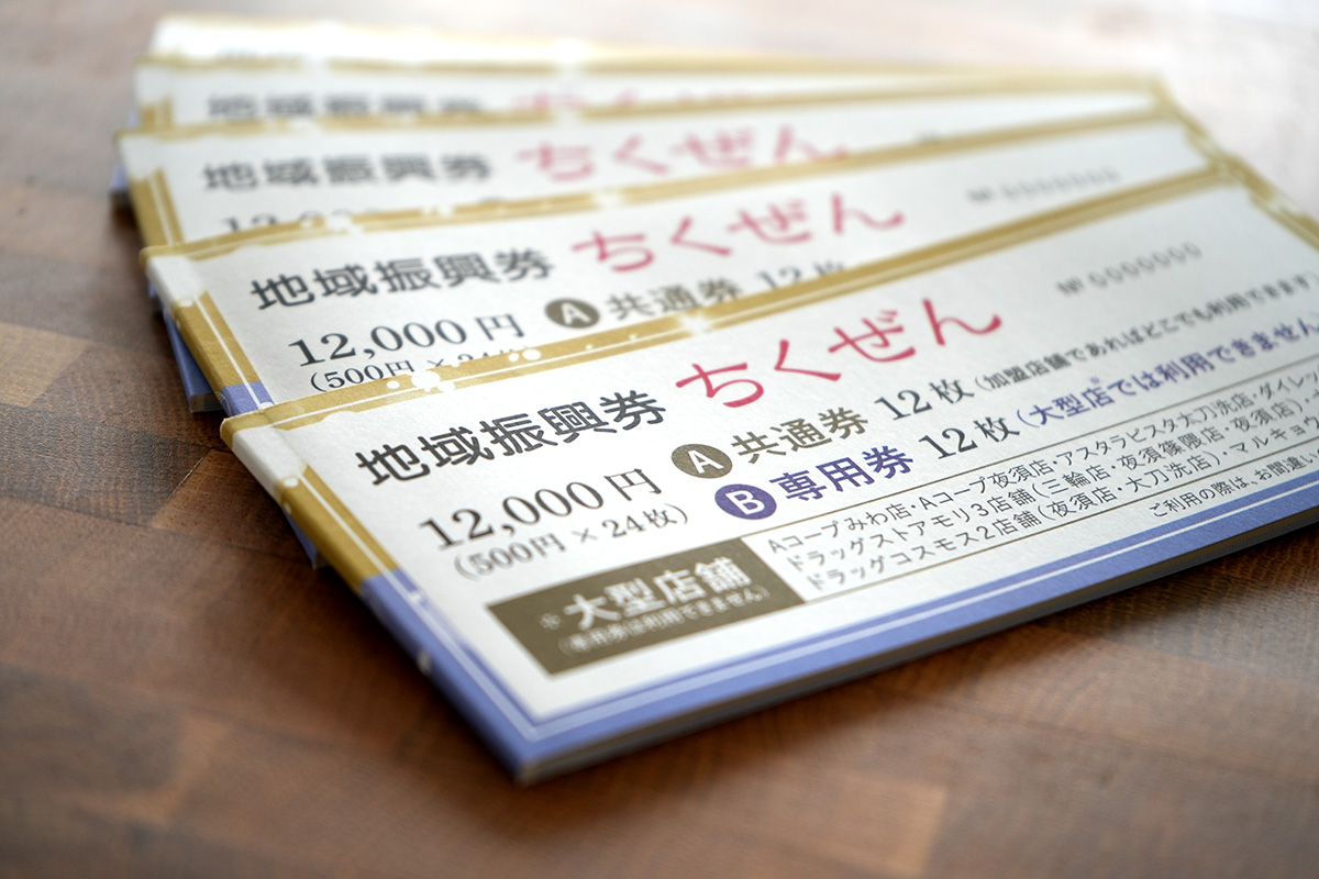 筑前町商工会さまが発行されている「ちくぜん地域振興券」。